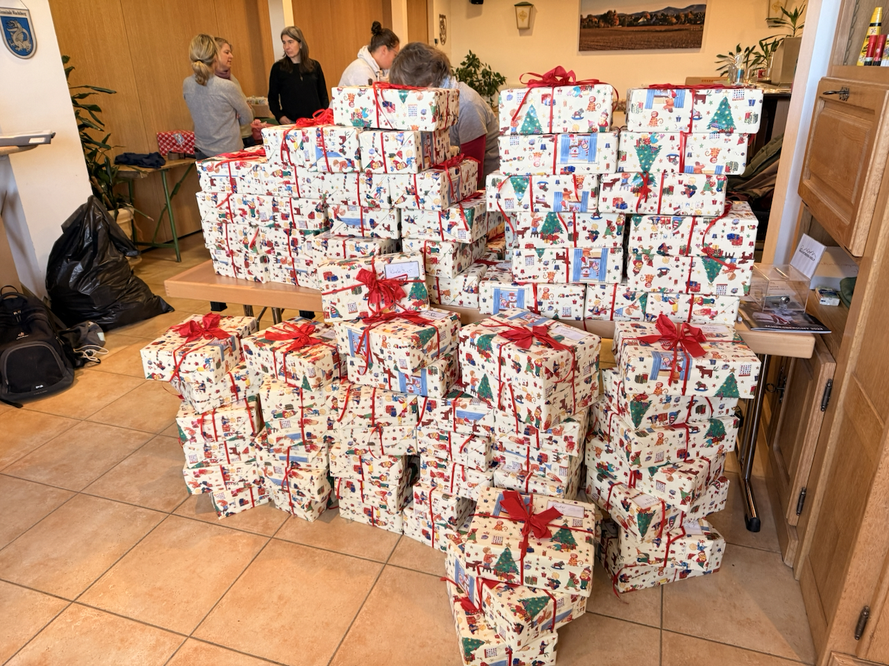 Unser Beitrag: 100 liebevoll geschmückte Weihnachtspäckchen für ukrainische Kinder zwischen vier und 16 Jahren, die ihre Heimat unter drohendem russischen Beschuss Hals über Kopf verlassen mussten, aber immer noch in Frontnähe leben. Zu den altersgerechten Inhalten gehören Süßigkeiten, Spielzeug und kleine modische Accessoires.
